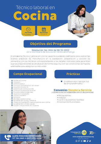 Cocinero dietas especiales y convenios bajo la modalidad de contrato de aprendizaje