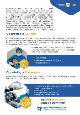 salud oral y procedimientos clínicos como:
