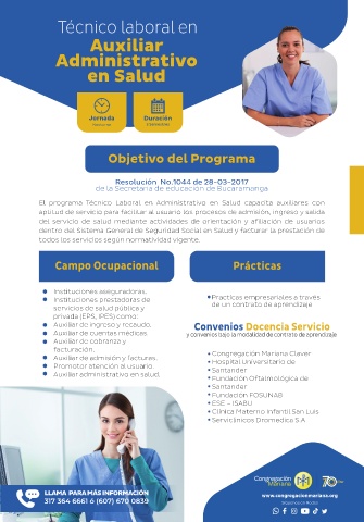 El programa Técnico Laboral en Administrativo en Salud capacita auxiliares con